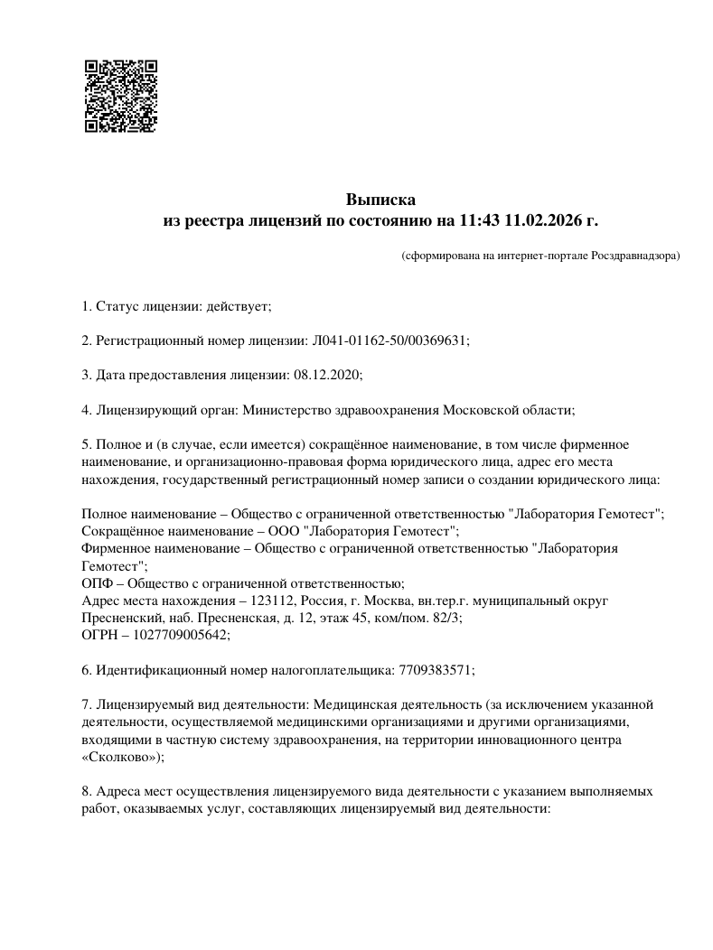 Лаборатория имеет полную аккредитацию и сертификацию. Заключения являются подробными и развернутыми.